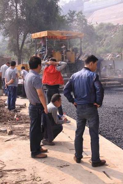 圖1—2為攤鋪機械正在跑道上進行鋪設(shè)作業(yè)的場景