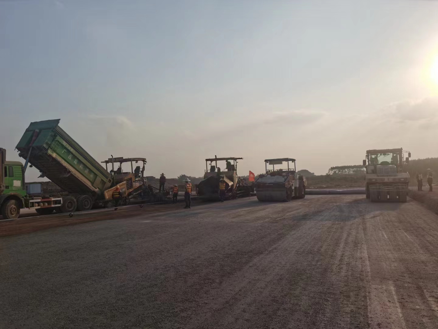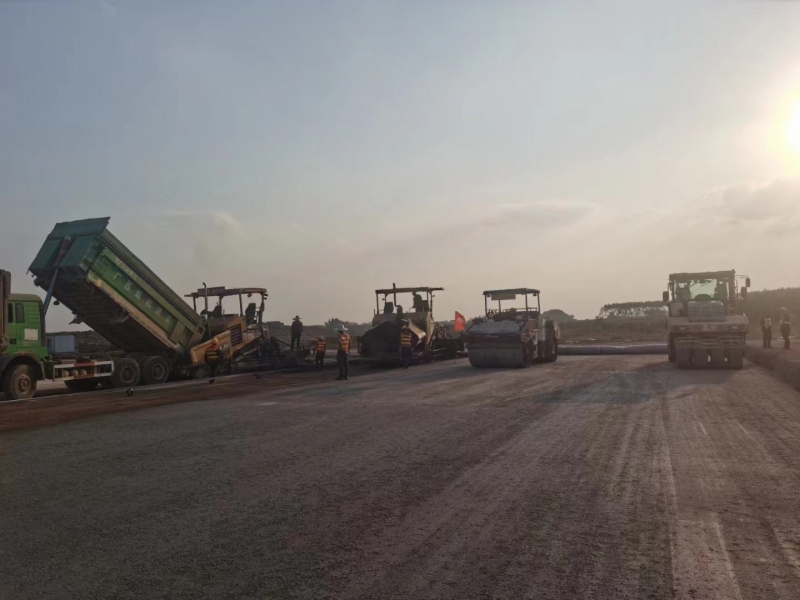 11月28日,隨著第一車水泥穩(wěn)定砂礫混合料倒入攤鋪機(jī),攤鋪機(jī)緩緩啟動(dòng),標(biāo)志著由我司承建的南寧吳圩機(jī)場(chǎng)改擴(kuò)建工程飛行區(qū)場(chǎng)道工程(四標(biāo)段)水穩(wěn)基層試驗(yàn)段施工正式開(kāi)始。